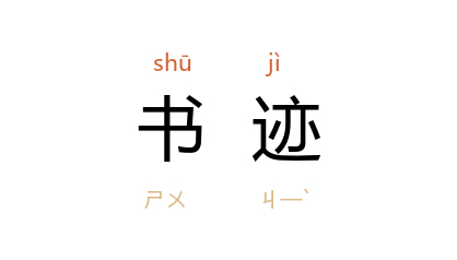 ⒈ 见“书跡”。亦作“书蹟”。笔迹;墨迹。