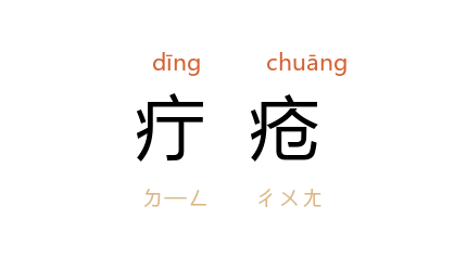⒈ 病名。又名疵疮。因其形小,根深,坚硬如钉状,故名。多因饮食不节,外感风邪火毒及四时不正之气而发。