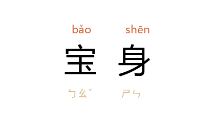 引《三国志·魏志·王昶传》:“夫人为子之道,莫大於宝身全行,以显父母。”明 唐顺之 《条陈海防经略事疏》:“国家承平日久,文吏游谈而养尊,武臣恬保而宝身,閒雅雍容之习成,而慷慨果鋭之气亦寖销矣。”