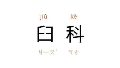 引唐 韩愈 《石鼓歌》:“故人从军在右辅,为我量度掘臼科。濯冠沐浴告祭酒,如此至宝存岂多?”孙汝听 注:“谓安石鼓处。”宋 黄庭坚 《次韵吉老十小诗》:“日短循除廡,溪寒出臼科。”