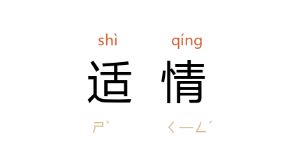 引《淮南子·人间训》:“故直意适情,则坚强贼之。”宋 梅尧臣 《永叔内翰作五言以叙之》:“我辈唯适情,一叶未尝摘。”明 谢榛 《四溟诗话》卷二:“诗,适情之具。”徐志摩 《我所知道的康桥》:“你能想像更适情更适性的消遣吗?”