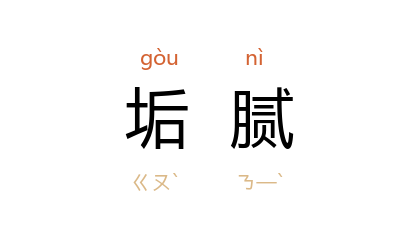 ⒈ 犹污垢。多指粘附于人体或物体上的不洁之物。