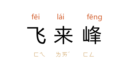 ⒈ 山峰名。也称 灵鹫峰。在 浙江省 杭州市 西湖 西北,与 灵隐寺 隔溪相对,高二百多米。峭壁岩洞中有 五代 至 元 代的造像三百多尊。 宋 王安石 有《登飞来峰》诗。