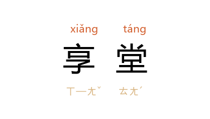 引《老残游记》第二回:“进了大门,正面便是 铁公 享堂,朝东便是一个荷池。”周立波 《盖满爹》:“享堂里的地上烧着一堆丁块柴,烟焰飞腾。”
