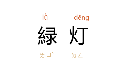 ⒈ 指挥交通的绿色信号灯。绿灯亮,指示车辆行人可以通行。
