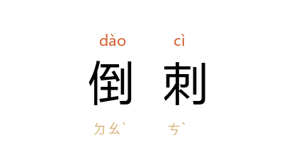 ⒉ 鱼叉鱼钩等尖端的倒钩。