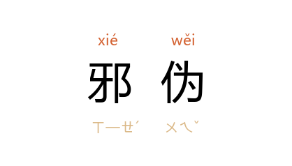 引汉 贾谊 《新书·春秋》:“故贤主者,不以草木禽兽妨害人民,进忠正而远邪伪,故民顺附而臣下为用。”《敦煌变文集·维摩诘经讲经文》:“贪嗔痴慢,諂誑邪伪,覆藏其中,未曾少许改悟。”明 沉德符 《野获编·列朝二·讲学见绌》:“又论南太宰 湛若水 学术偏陂,志行邪伪,乞斥之。”
