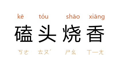 例如:「几年前,他到处磕头烧香,请朋友帮忙,还没人愿意,今日可不同了!」