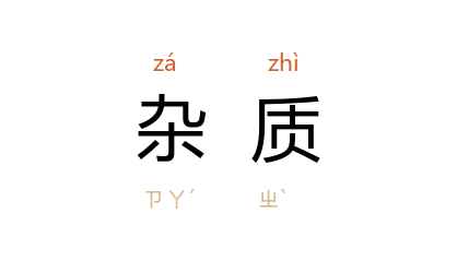 引鲁迅 《二心集·“硬译”与“文学的阶级性”》:“譬如原质或杂质的化学底性质,有化合力。”郭沫若 《中国史稿》第三编第一章第四节:“经化验含铜量在82%以上,含锡15%左右,还有其他杂质。”