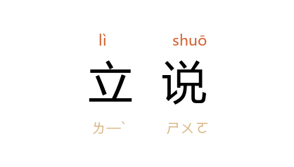 引宋 叶适 《朝请大夫陈公墓志铭》:“边事将作, 思诚 諗故。余告以立説有先后,定计有始末,无误也。”明 王守仁 《大学问》:“吾党各以己见立説,学者稍见本体,即好为径超顿悟之説,无復有省身克己之功。”黄侃 《礼学略说》:“今文、古文,往往差异,姑置勿谈,即同一师承,立説亦復不齐壹。”