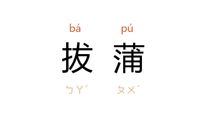 引《乐府诗集·清商曲辞六·拔蒲》 郭茂倩 题解引 南朝 陈智匠 《古今乐录》:“拔蒲,倚歌也。”按,古辞二曲,无名氏作。其一云“拔蒲五湖中”,其二云“与君同拔蒲”,故名。 唐 张祜 《拔蒲歌》:“拔蒲来,领郎镜湖边,郎心在何处,莫趁新莲去。拔得无心蒲,问郎看好无。”
