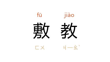 ⒈ 布施教化。语出《书·舜典》:“帝曰:‘契,百姓不亲,五品不逊,汝作司徒,敬敷五教,在宽。’”唐·褚琇《奉和圣制送张说上集贤学士赐宴》:“惟师恢帝则,敷教叶天工。”