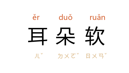 例如:「董事长什么都好,就是耳朵软,所以小人容易接近。」