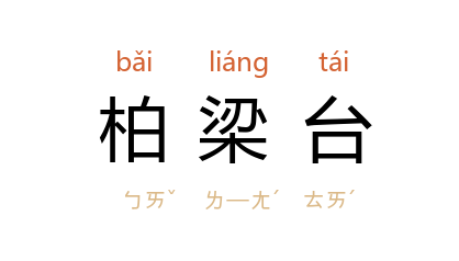 ⒈ 汉 代台名。故址在今 陕西省 长安县 西北 长安 故城内。 《三辅黄图·台榭》:“柏梁臺,武帝 元鼎 二年春起此臺,在 长安 城中北门内。