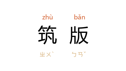 ⒈ 即版筑。谓墙板与杵。筑墙,以泥置板夹中,用杵舂实。