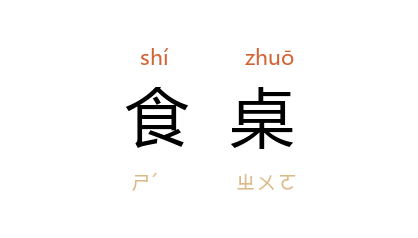 ⒈ 亦作“食卓”。饭桌。 宋 邵伯温 《易学辨惑》:“伊川 同 朱公掞 访先君,先君留之饮酒,因以论道。