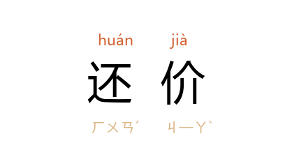⒈ 买东西时嫌价钱太高,说出愿意付的较低价钱,称为「还价」。