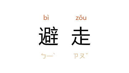 引晋 陶潜 《搜神后记》卷七:“婢惊怖返走,人狗亦随婢后,至家庭中,举家避走。”元 杨梓 《豫让吞炭》第二折:“智伯 攻围甚急,某避走 晋阳。”清 赵绍祖 《宿田家书所见》诗:“老翁急避走,入门肆督促。”