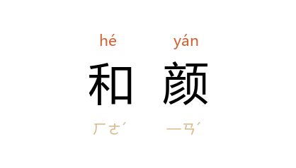 引《文选·曹植·洛神赋》:「收和颜而静志兮,申礼防以自持。」《儒林外史·第三回》:「学道和颜道:『文字已在这里了,又面试些甚么?』」