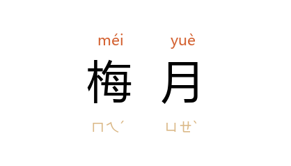 ⒈ 阴历四月。此时正当梅雨时节,故称为「梅月」。