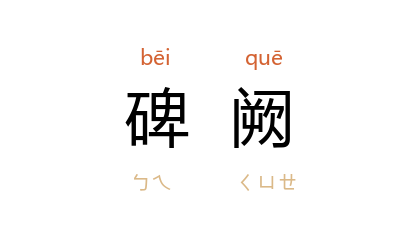 ⒈  石碑和石阙。 北魏 郦道元 《水经注·滱水》:“汉 末丧乱,山道不通此,旧有下阶神殿。中世以来,岁书法族焉。