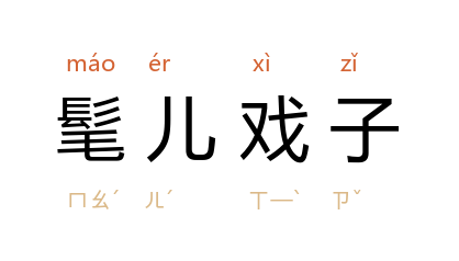 引瞿秋白 《论文学革命及语言文字问题·学阀万岁》:“贵族的士大夫在自己家里养着一班髦儿戏子或者像姑戏子。”夏衍 《鲁迅与电影》:“但是在五六年之前,情况就和现在两样,‘影戏’这种‘娱乐品’,完全是‘文化人’注意圈外的存在,电影演员自然也只有‘文明戏子’和‘髦儿戏子’相仿的身分。”