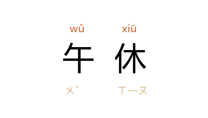 ⒈ 午间的休息,一般指午饭后的休息时间。