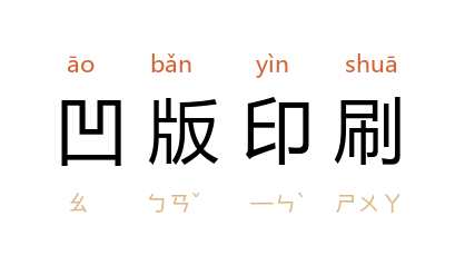 ⒈ 印版上著墨的印纹部分凹入版面,印刷时,版面涂布油墨后,再将平面上的油墨去除,仅留凹陷部分的油墨,然后覆纸、加压,使版面低凹部分的油墨移印到纸面上,此种印刷方法称为「凹版印刷」。