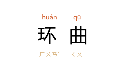 引唐 韩偓 《海山记》:“﹝ 隋煬帝 ﹞製湖上曲《望江南》八闋云:‘……环曲岸,阴覆画桥低。’”元 韦居安 《美人对镜歌》:“玉奩脱覆光烁人,洞房环曲惊晓春。”明 王秀楚 《扬州十日记》:“由田陌至深巷一箭地,环曲以出大街。”