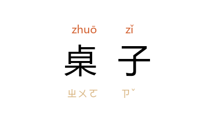 ⒈ 上有一水平面,下有柱子支撑,可在上工作或放置物品的家具。制做材料有木材、铝、塑胶等。计算单位为「张」。