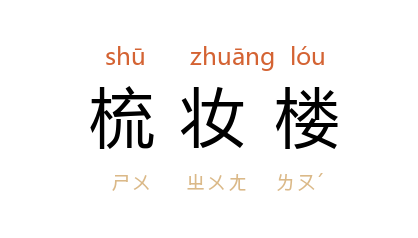 ⒉ 古迹名。即 梳妆台。亦省称“梳粧”。参见“梳妆臺”。