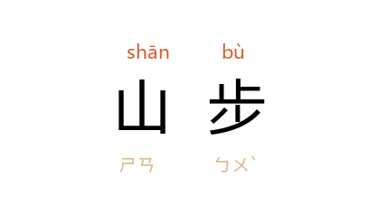 引宋 陆游 《晚闻庭树鸦鸣有感》诗:“残骸幸强健,沽酒遍山步。”自注:“乡语谓湖山间小聚为山步。”清 曹寅 《送亮生南还即和留别诗兼寄些山先生》:“山步若邀斑杖健,北湖长望惜莓苔。”