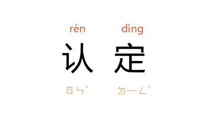 ⒉ 法律上指未证明事实的真相,推定为或然者,称为「认定」。