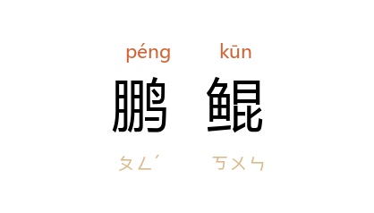 引《庄子·逍遥游》:「北冥有鱼,其名为鲲,鲲之大不知其几千里也。化而为鸟,其名为鹏,鹏之背不知其几千里也。」