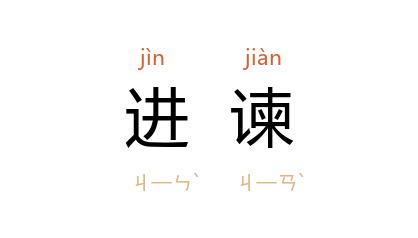 引《荀子·成相》:“﹝ 伍子胥 ﹞进諫不听,剄而独鹿弃之江。”《南史·江淹传》:“淹 每从容进諫, 景素 不纳。”《旧唐书·韦温独孤郁传赞》:“伏蒲进諫,染翰为文。”郭沫若 《李白与杜甫·杜甫的门阀观念》:“高宗 李治 都屡次告戒他,但不改故态,臣下进谏更要遭受到打骂。”