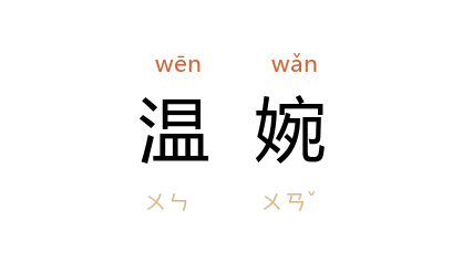 引清 蒲松龄 《聊斋志异·庚娘》:“妇与 庚娘 同居,意度亦颇温婉。”茅盾 《幻灭》十一:“两位都把 静女士 视同小妹妹,因为她是怯弱,温婉,多愁,而且没主意。”