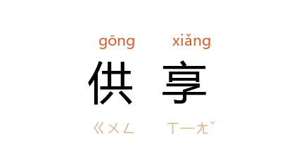 引郭沫若 《反正前后》四:“水是很清冽的,井畔有茶店,汲取井水来煮茶以供享游客。”郭沫若 《关于宋玉》:“贵族阶级的‘大王之雄风’是庶民阶级所不能供享的。”