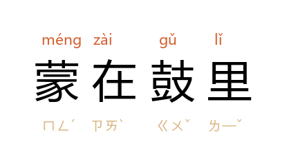 ⒈ 比喻受人蒙哄,好像装在鼓里,不知道外面的事。