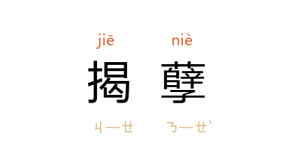 引《文选·王延寿<鲁灵光殿赋>》:“飞陛揭孽,缘云上征。”吕向 注:“揭孽,极高貌。”南朝 梁 刘勰 《文心雕龙·夸饰》:“体势宫殿,嵯峨揭业。”