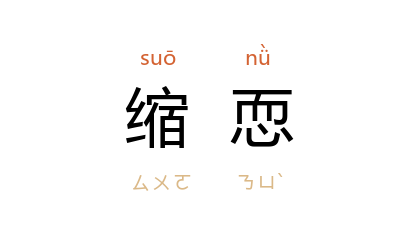 引唐 柳宗元 《乞巧文》:“叩稽匍匐,言语譎诡;令臣缩恧,彼则大喜。”清 钱谦益 《陈孟孺七十序》:“﹝余﹞浸淫二十年,始自悔其少作,尽抹去之,以庶几求当於作者之旨,字鉥句劌,缩恧不能出。”