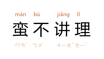 引鲁迅 《彷徨·肥皂》:“谁知道那势利鬼不但不依,还蛮不讲理,说了许多可恶的废话。”毛泽东 《关于正确处理人民内部矛盾的问题》九:“在我们社会里,也有少数不顾公共利益、蛮不讲理、行凶犯法的人。”艾芜 《纺车复活的时候》:“呵哟,你是野人哪,这样蛮不讲理!”
