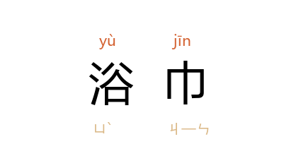 ⒈ 洗澡专用的大毛巾,较一般洗脸用的毛巾为大。