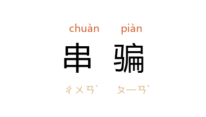 例如:「金光党都是和同伴以串骗的方式,让受害人在不知不觉中失去财物。」