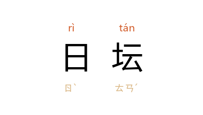 ⒈ 旧时祭日之处。在今 北京市 朝阳区 朝阳门 外东南。 明 嘉靖 九年建。 明 清 二代均于每年春分日遣官致祭, 清 制遇甲丙戊庚壬年由皇帝亲祭。参阅 明 王三聘 《古今事物考·礼义·日月坛》、《清会典事例·礼部·中祀》。