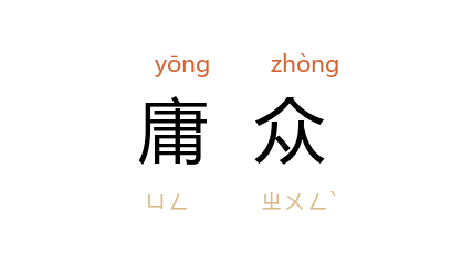 引《荀子·修身》:“容貌、态度、进退、趋行,由礼则雅,不由礼则夷固僻违,庸众而野。”杨倞 注:“庸,凡庸;众,众人。”明 张居正 《答殷石汀言宜终功名答知遇》书:“而独以浮忌之口,即欲引去,是忍於背君相之知,而重於犯庸众之口也。”鲁迅 《热风·随感录三十八》:“‘个人的自大’,就是独异,是对庸众宣战。”