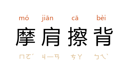 ⒈ 摩:摩擦。肩碰肩,背靠背。形容人多拥挤。
