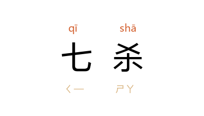 引清 黄六鸿 《福惠全书·刑名·总论》:“人命有真有假,真者不离乎七杀:曰劫杀,曰谋杀,曰故杀,曰鬭殴杀,曰误杀,曰戏杀,曰过失杀。”