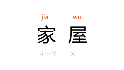 引萧红 《夜风》三:“洗衣服的婆子有个破落而无光的家屋,穿的是 张老太 穿剩的破毡鞋。”郭沫若 《中国古代社会研究》第一篇第一章第五节:“原始家屋的进化一般是由平穴而竖阬而构巢而石累。”