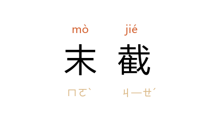 ⒈ 最后一段。如:吃甘蔗,从梢到本,末截滋味最佳。末期,末代。