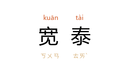 引《敦煌变文集·父母恩重经讲经文》:“直待儿身四体安,阿娘方觉心宽泰。”元 无名氏 《抱妆盒》第二折:“小储君在盒子内多宽泰,则我这泼性命从鍼关里透出来。”《天雨花》第五回:“施生 之病半因忧鬱而成,今出了尼菴,身心宽泰,那病登时好了一半。”潘漠华 《乡心》:“他想尽管这样混下去,是不会有宽泰的日子过的。”